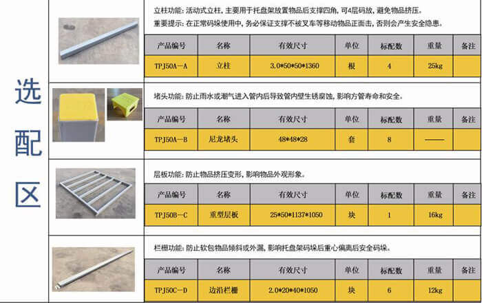 產(chǎn)品介紹:本產(chǎn)品主要優(yōu)點(diǎn)是與叉車配合實(shí)用,可充分利用倉(cāng)庫(kù)高度空間。降低倉(cāng)儲(chǔ)費(fèi)用,管理和經(jīng)營(yíng)費(fèi)用。主要用于軟袋子包裝和紙箱包裝物品存放和顆粒物品存放防止積壓,常用于冷鏈、飼料、塑料顆粒倉(cāng)儲(chǔ)及物流。