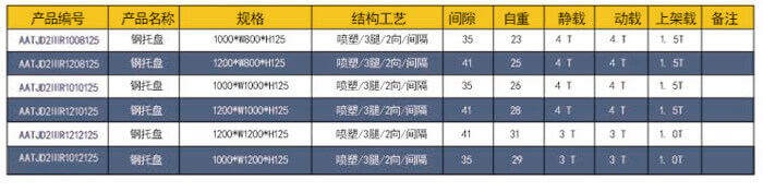 四向三腿——方管鋼托盤 技術(shù)參數(shù)說明: 產(chǎn)品編號(hào): AACJD4ⅢC1212150 產(chǎn)品名稱:方管鋪面川字鋼托盤 產(chǎn)品規(guī)格: 1200*1200*150 產(chǎn)品自重: 29kg 防銹工藝: 靜電沙紋噴塑 產(chǎn)品靜載: 2000KG(均勻載重) 產(chǎn)品動(dòng)載: 1.500KG(均勻載重) 產(chǎn)品上架: 1200KG(均勻載重) 主要用途: 倉庫、車間周轉(zhuǎn)、物流倉儲(chǔ)